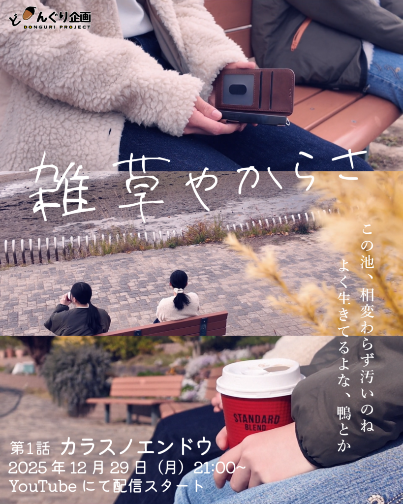 「雑草やからさ」2025年12月29日(月)から配信開始! どんぐり日記 23:59 どんぐり企画 ドラマユニットショートワークスvol.1 出演:愛花あかり、ゆかいのき脚本:鳴海遥真映像製作:高見亜優花、菜歩宣伝広報:木原陽子録音部:ほっぴぃ美術:カスタードたい焼き Teaser Movie